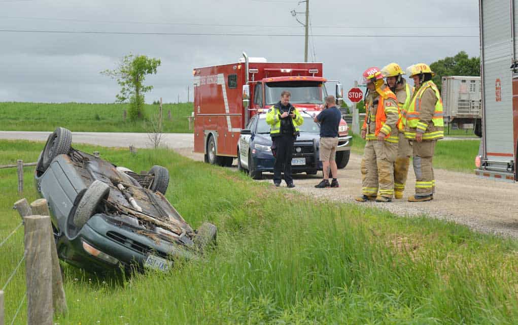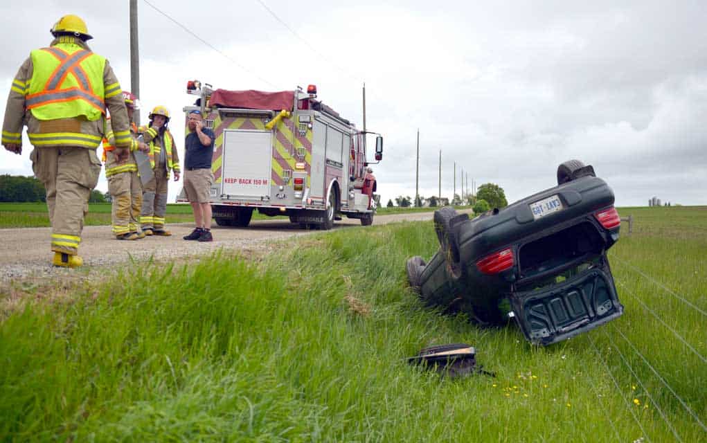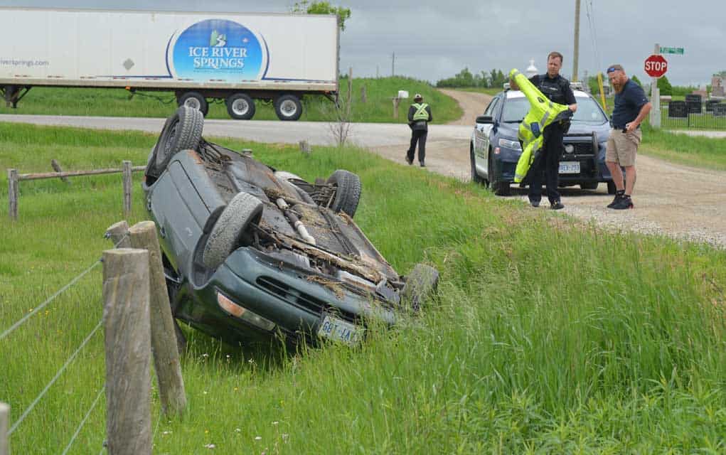A sharp drop-off from the shoulder caused a car to roll over at low speed on Tillman Road near Arthur Street, just north of Elmira, on Tuesday morning. No one was injured.
