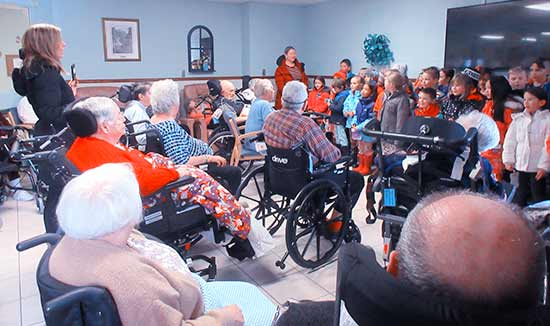 On Friday December 22nd at 10:30 Corrine Kennedy’s grade 1 / 2 class and Karen Randall’s 2 / 3 class visited Twin Oaks Nursing Home. They sang several Christmas songs with the residents also singing along. Each resident also received a specially made Christmas card for them.