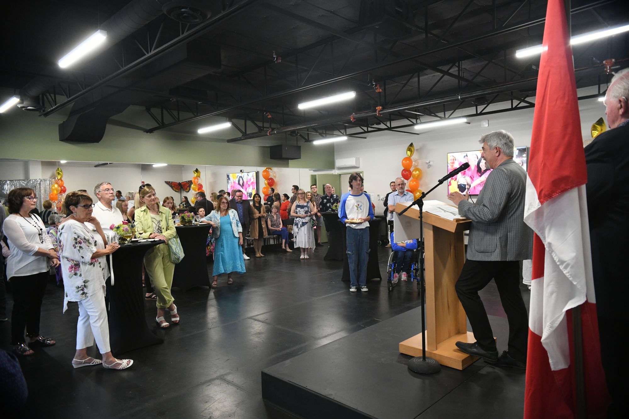A space dedicated to theatricality was all business July 14 as the federal government presented Drayton Entertainment with a grant of more than $1 million. The funding supports the recently opened Youth Academy in Waterloo.