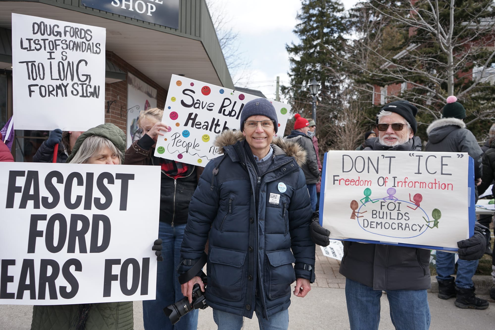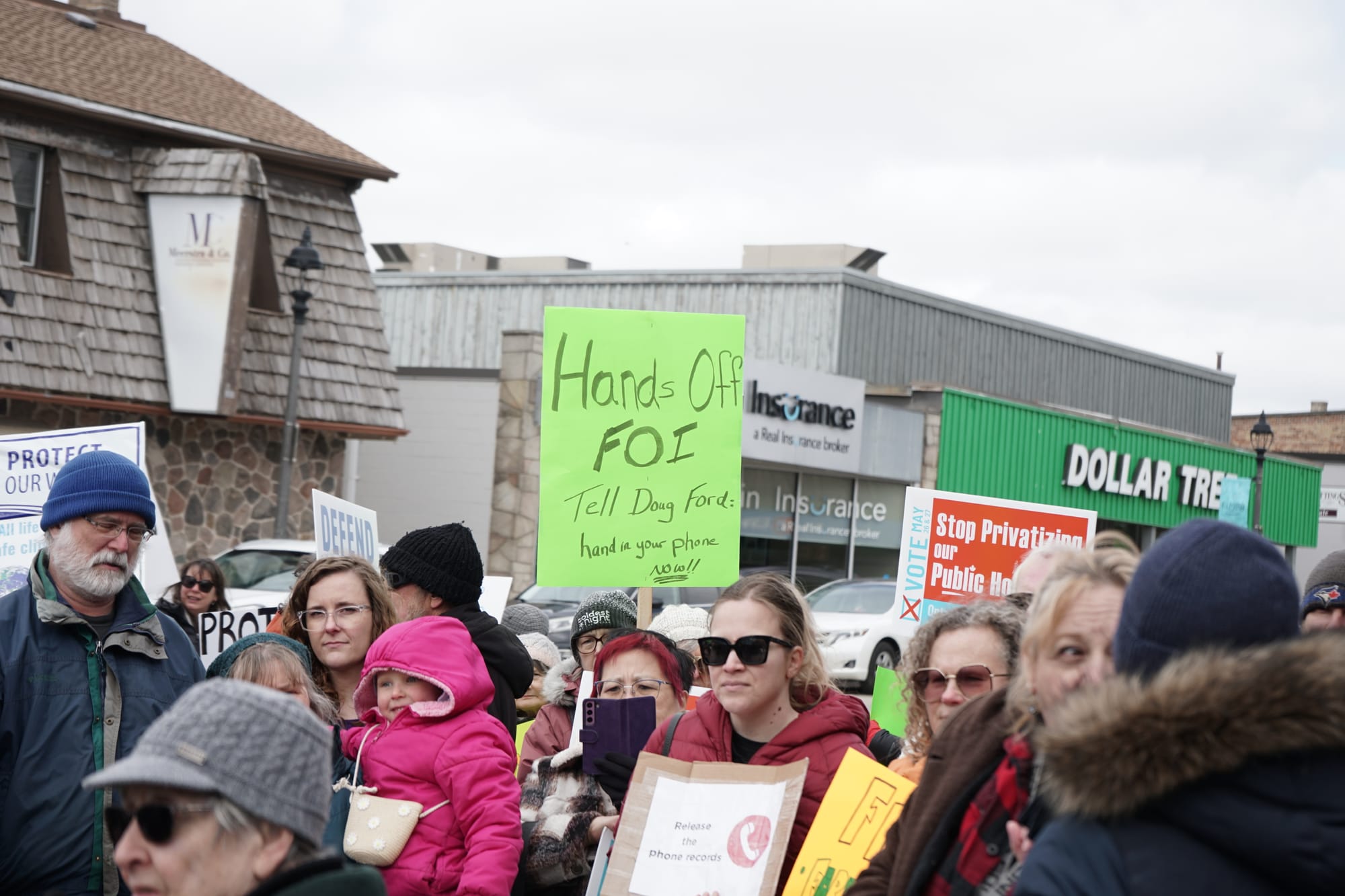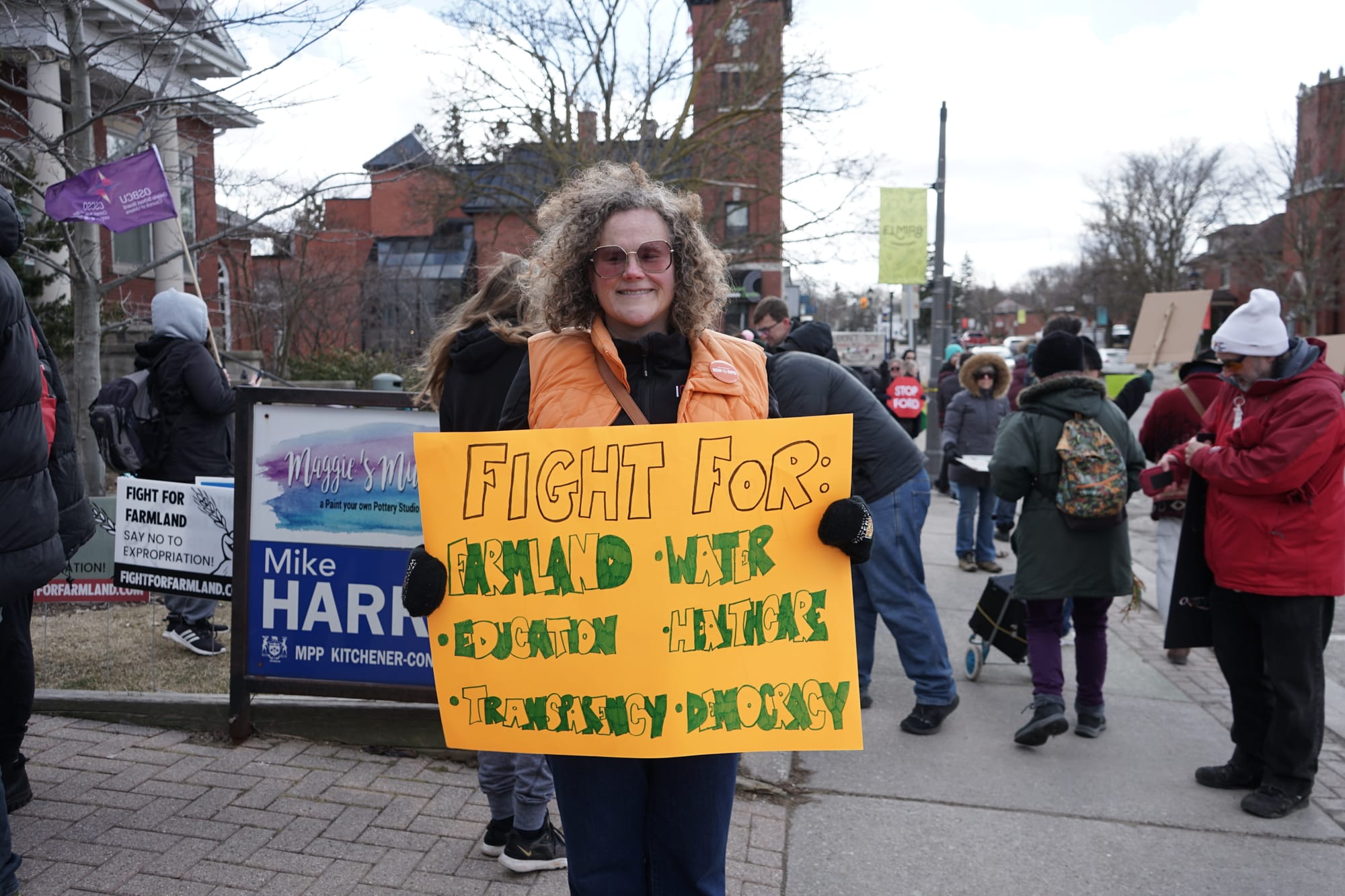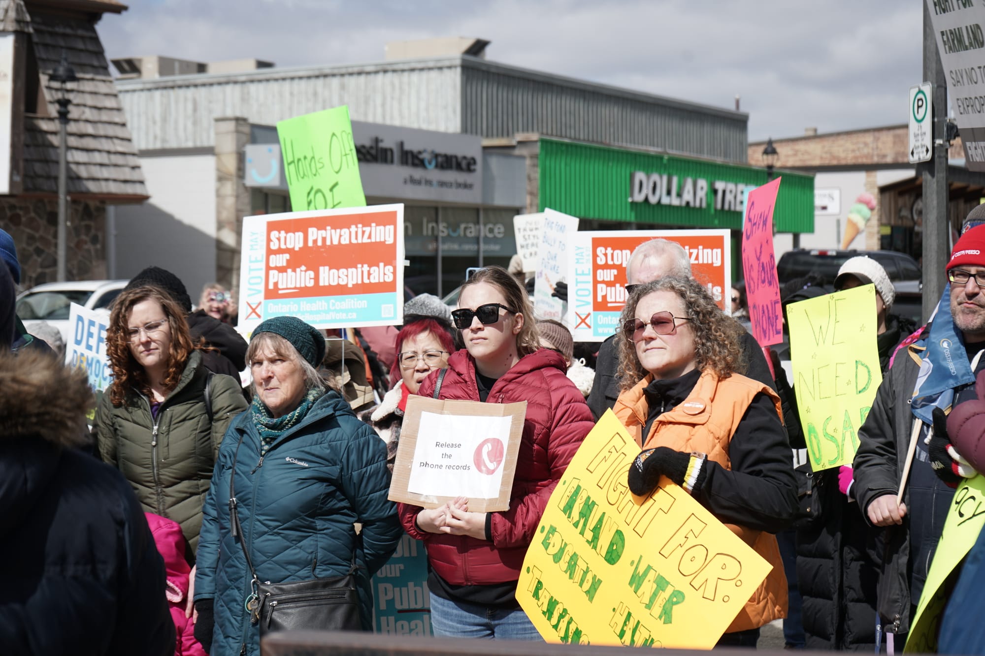 With a variety of grievances against the Ford government, some 160 people gathered Saturday outside Kitchener-Conestoga MPP Mike Harris’s office in Elmira.