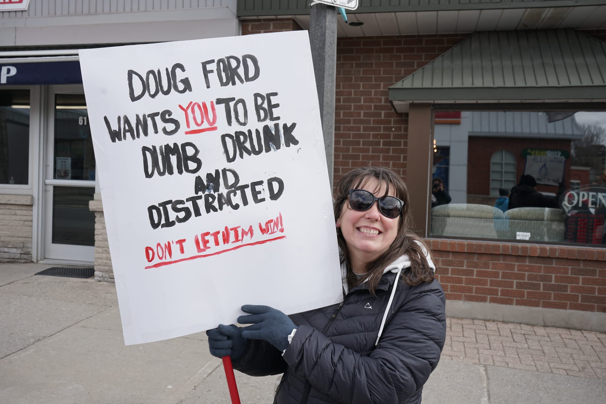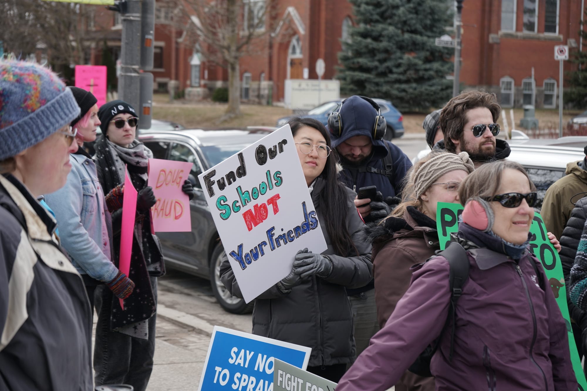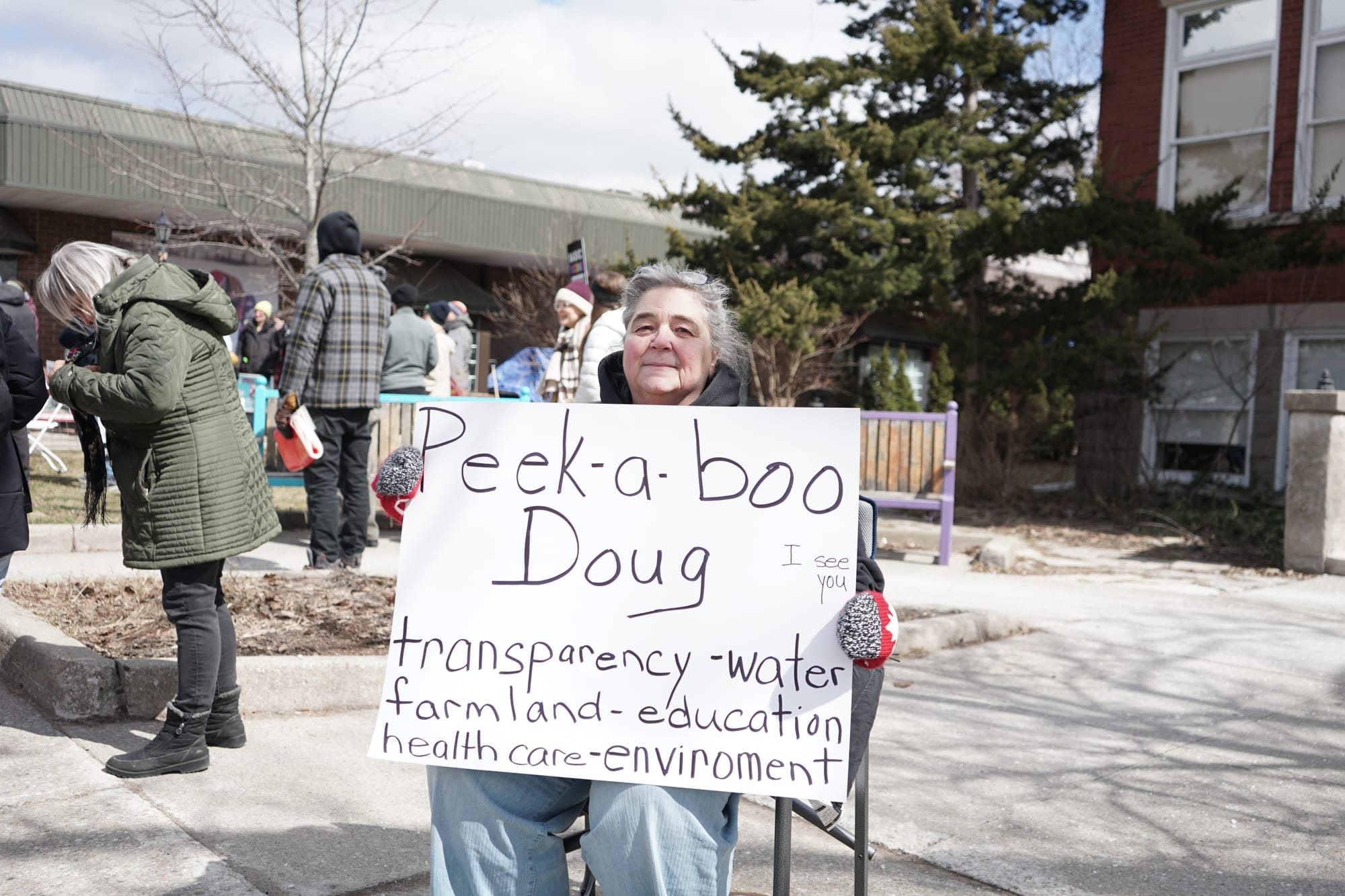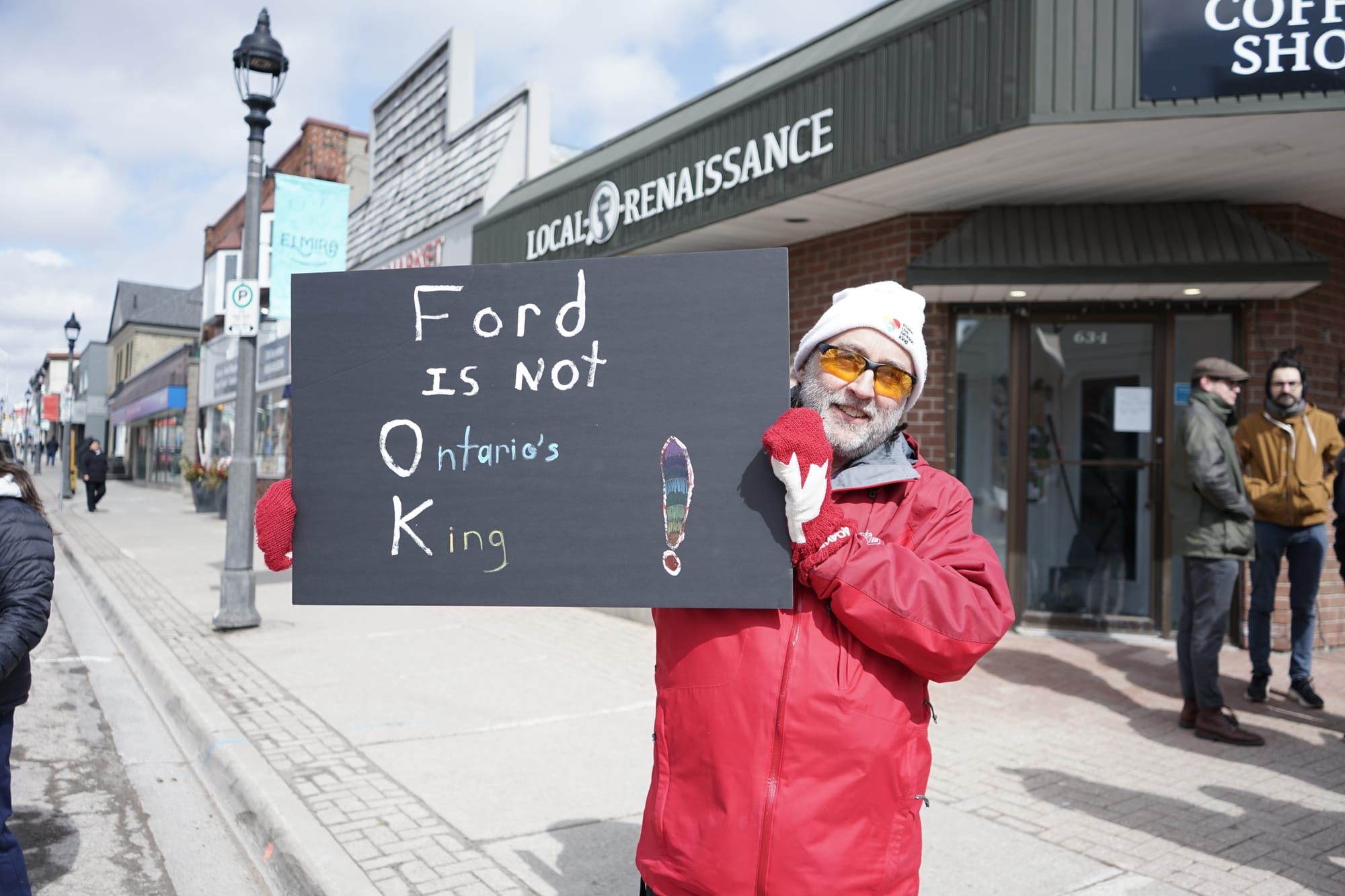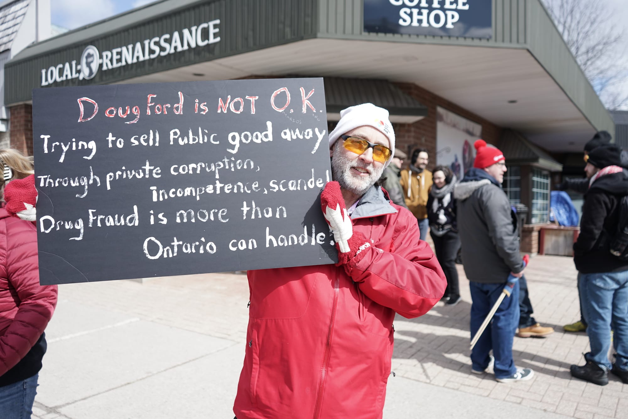 With a variety of grievances against the Ford government, some 160 people gathered Saturday outside Kitchener-Conestoga MPP Mike Harris’s office in Elmira.