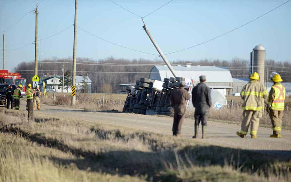 St. Jacobs fire department responded to a motor vehicle incident on Scotch Line Road between New Jerusalem RD and CN Rail, just after 2 p.m. after a truck transporting milk hit a hydro pole, flipping on its side into the ditch. More details to follow.