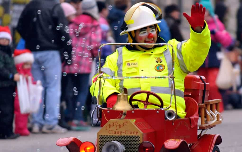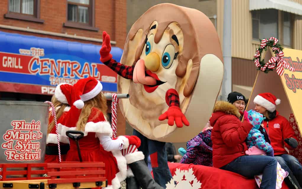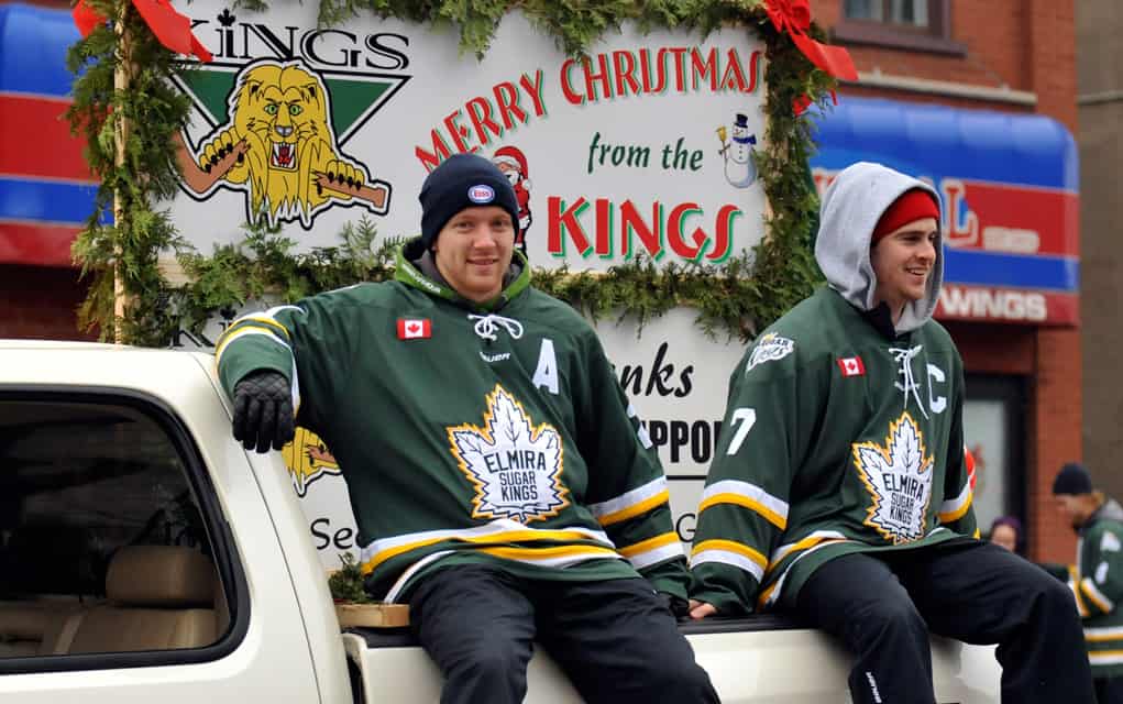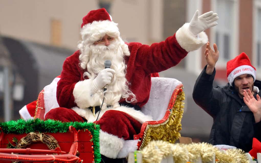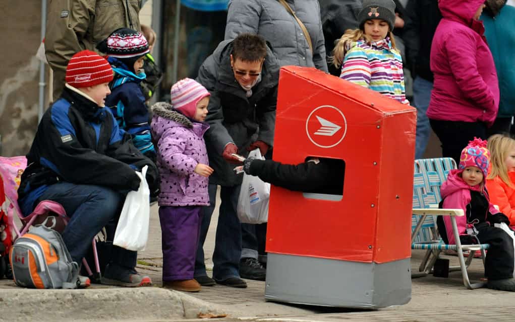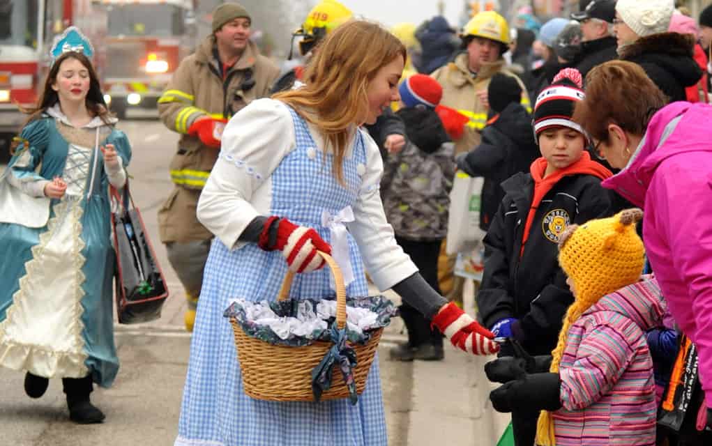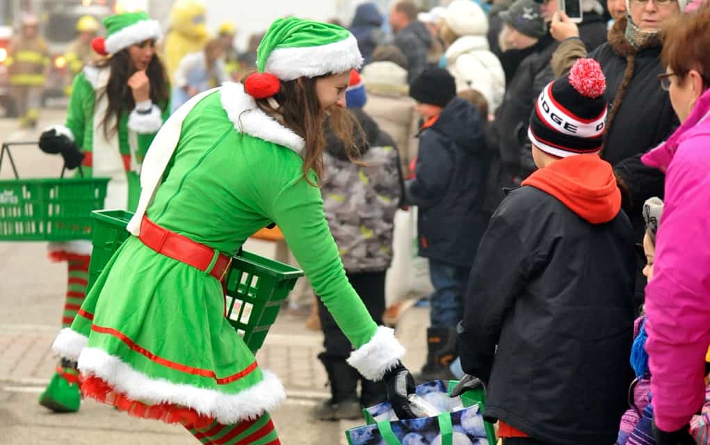 Santa waves to the crowds lining Arthur Street last Saturday morning, while marching bands play classic carols, the Elmira Sugar Kings thank their fans and hand out candy and a human mailbox collects children’s letters to send to the North Pole. The parade is organized by the Kiwanis Club in Elmira and according to organizers, grows larger and longer every year. [Liz Bevan / The Observer]