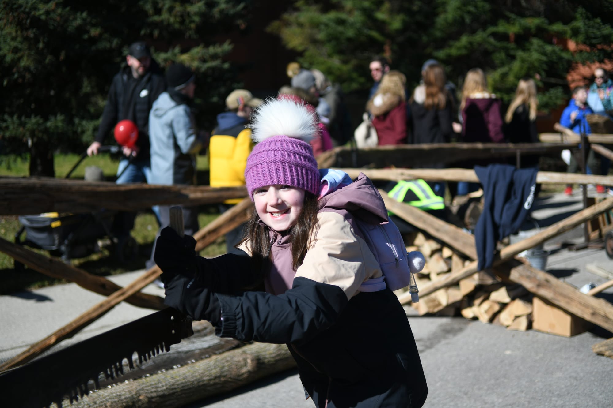 The Elmira Scouting group has always had a log-sawing booth at the festival, where people can cut a piece of wood and have it branded by the Scouts.