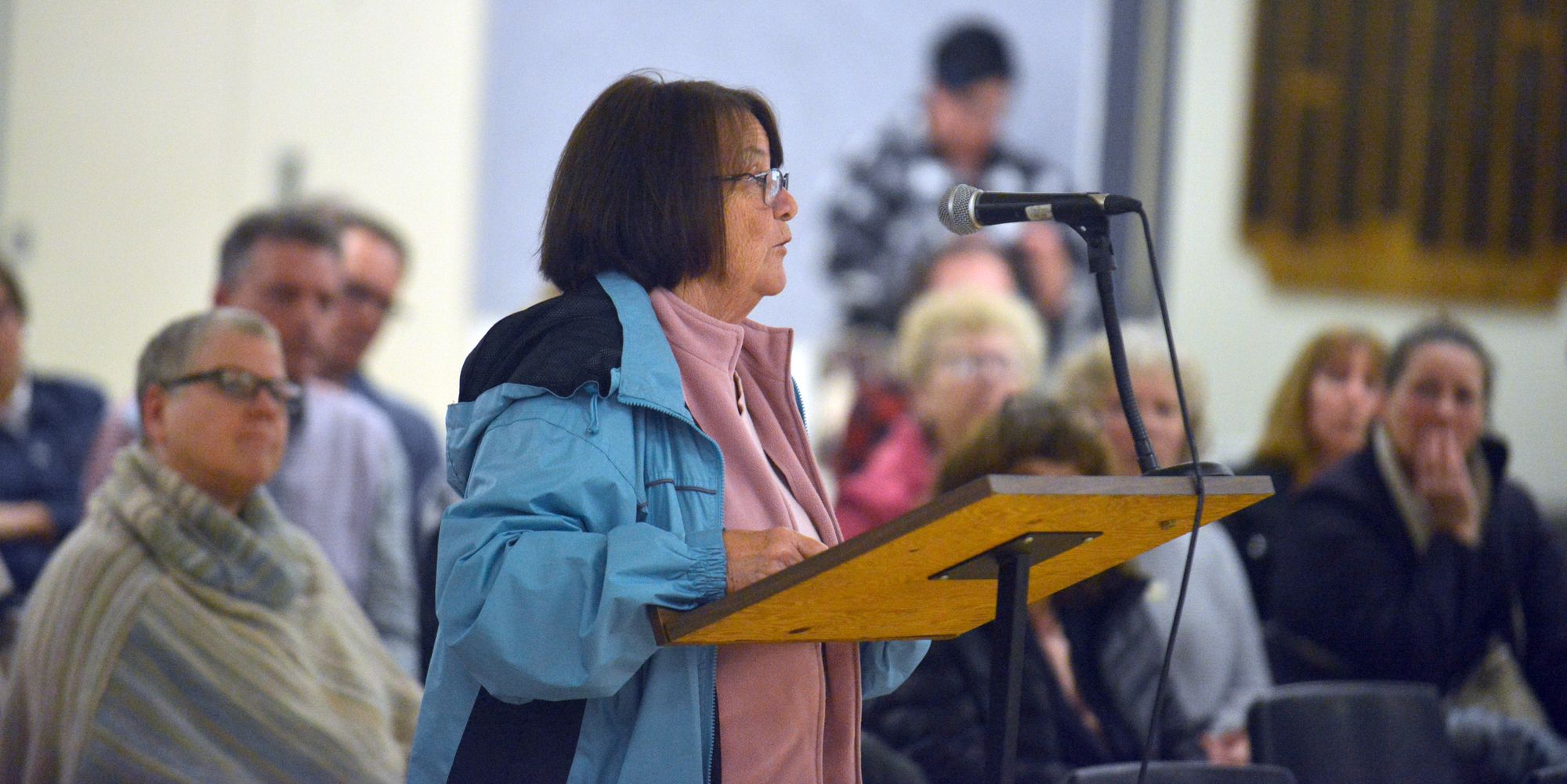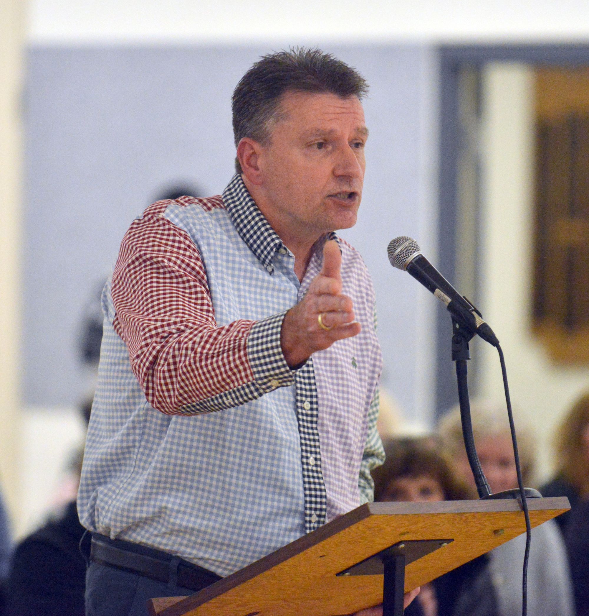 Resident John Rose is one of several delegates at the Wellesley Townhall about Wellesley Township's budget.